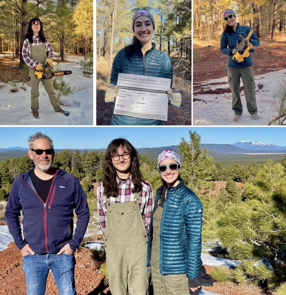 During exam week, Oscar and Andrew joined Cara and Mariah on a field trip to the Mogollon Rim Ranger District of Coconino National Forest. The team was in search of a small ponderosa pine that would provide material for a 14C cellulose standard for some of Cara’s thesis work, and at the same time give Cara her first Christmas tree. With her permit in one hand, and chainsaw in the other, Cara declared the event a success.